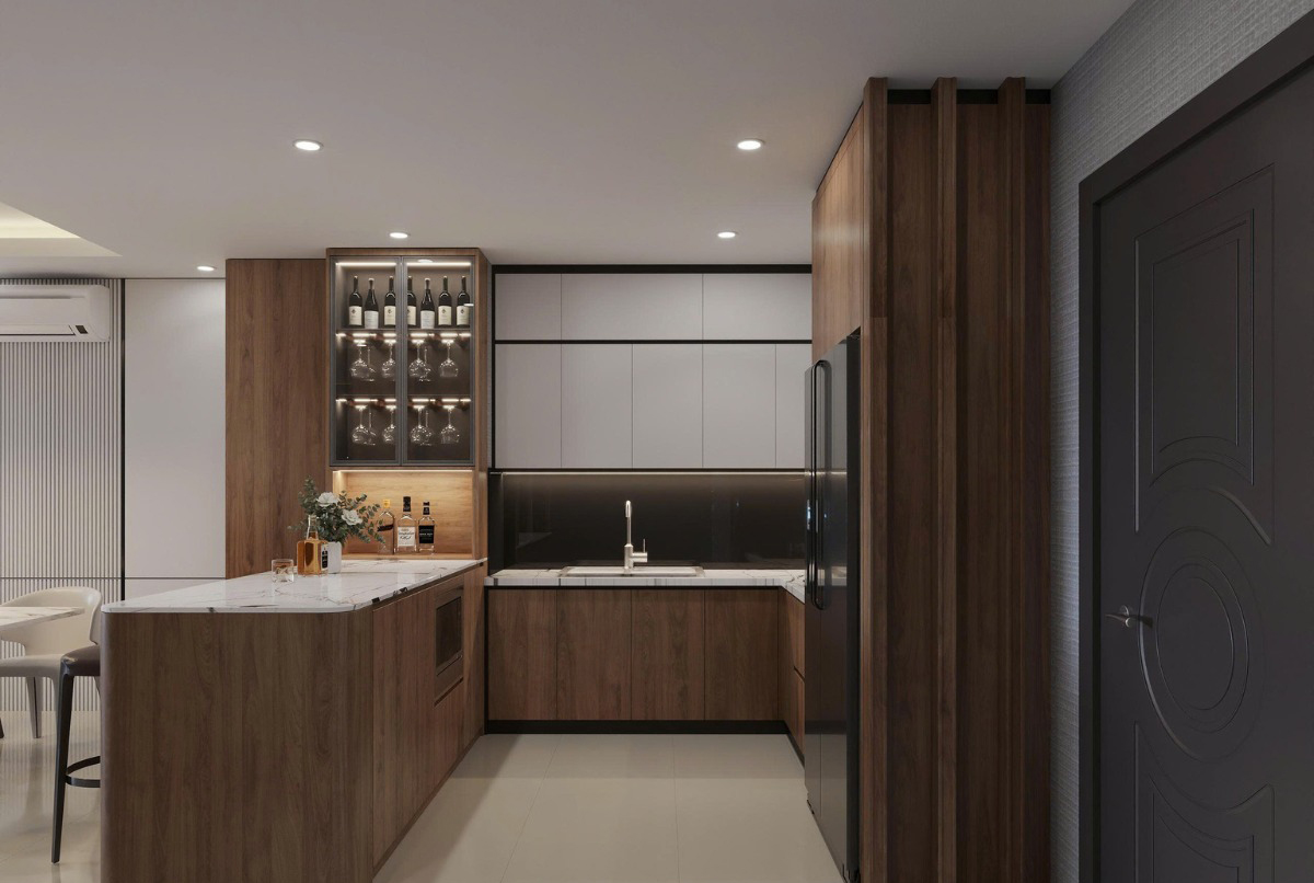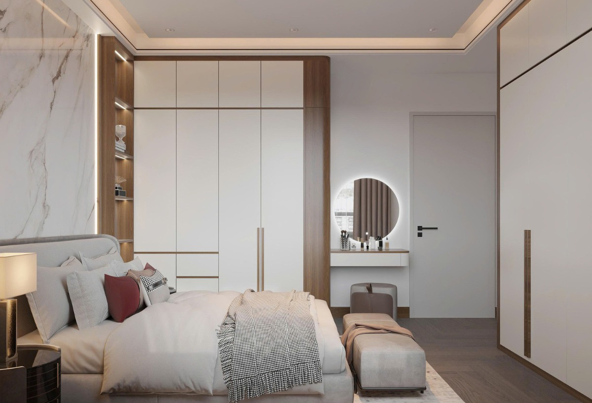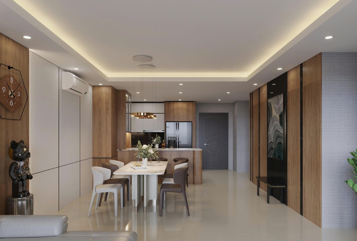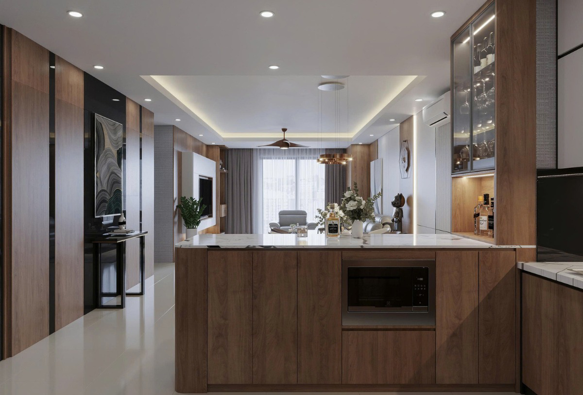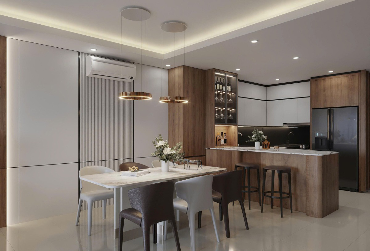 Căn hộ 105m2 tại Vinhomes Royal City được Nội Thất Đạt Kỳ thiết kế dành cho gia đình trẻ, hướng tới một không gian sống tiện nghi, tinh tế nhưng vẫn giữ được cảm giác ấm cúng. Với lợi thế diện tích 3 phòng ngủ, bài toán đặt ra là làm sao để cân bằng giữa công năng sử dụng và tính thẩm mỹ, đồng thời tạo được sự đồng nhất trong toàn bộ không gian.